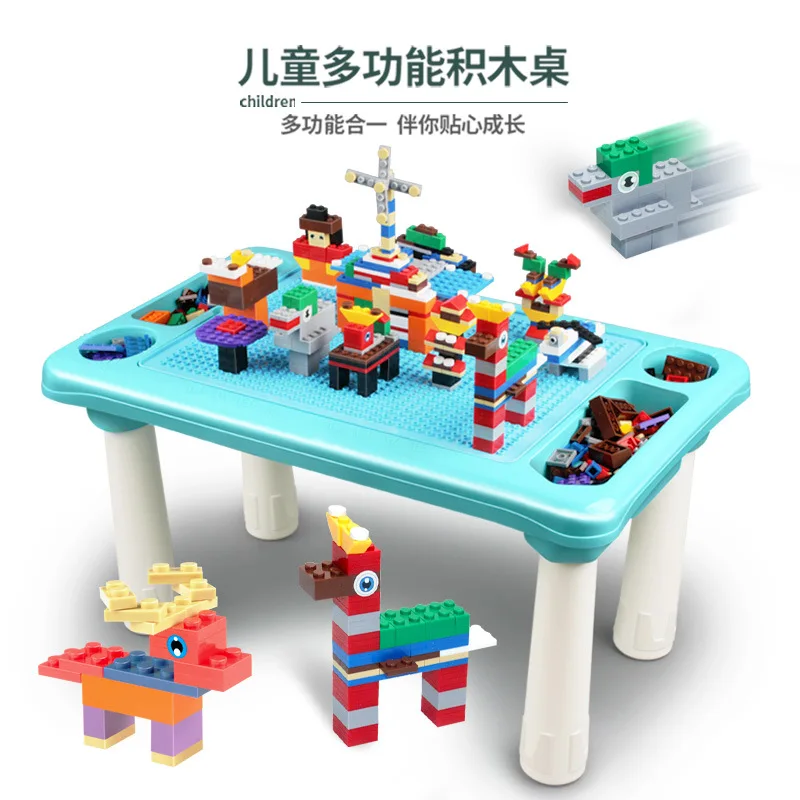 2019 Building Blocks Table With 300 Blocks Desk Base Plate Multi Functions Study Table For Children