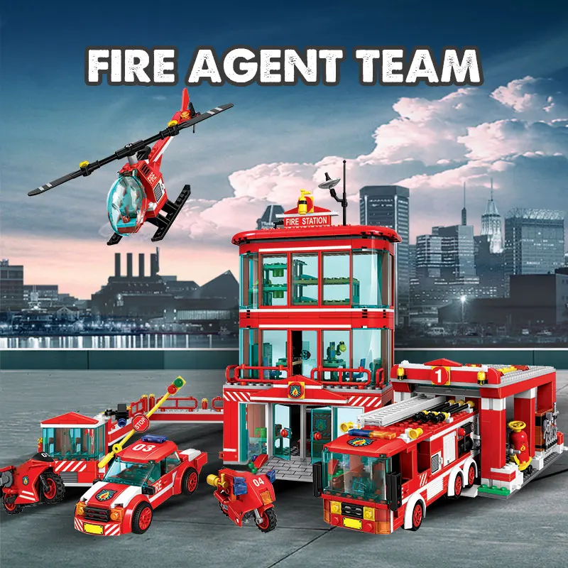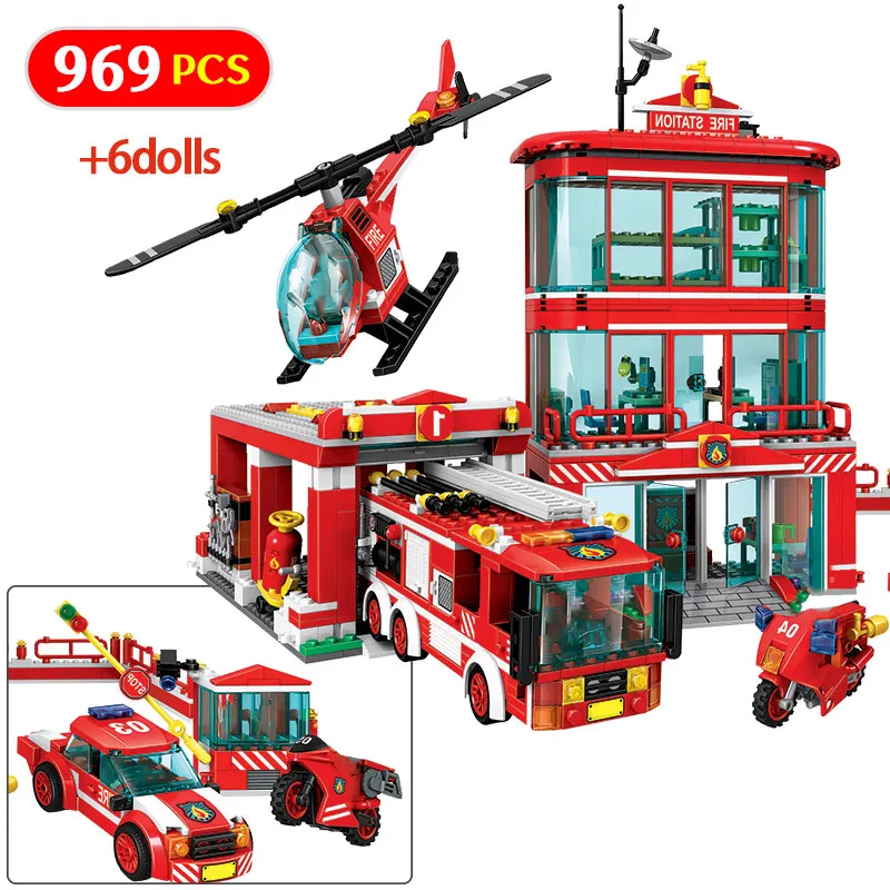 969pcs City Police Fire Station Model Building Blocks Legoing City Truck Car Helicopter Figures Bri