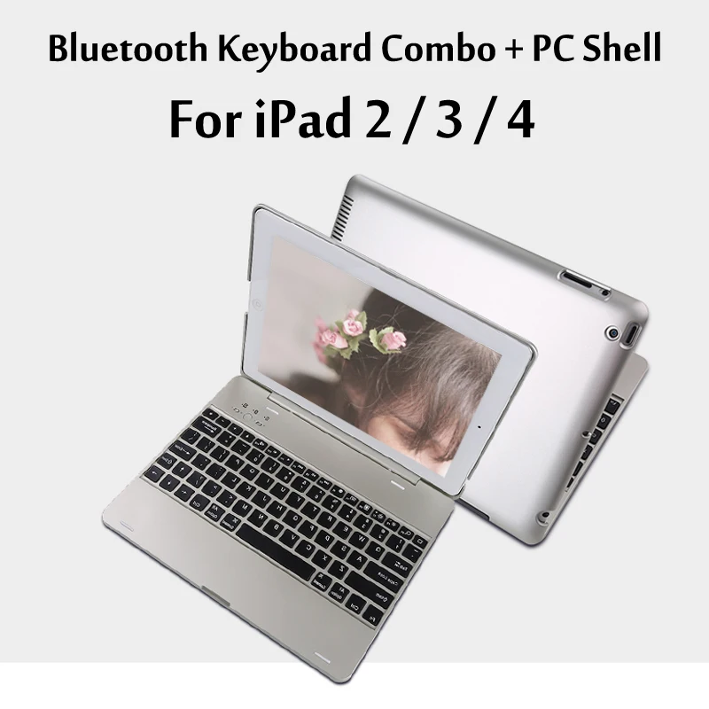 For iPad2/3/4 Luxury Wireless Bluetooth 3.0 Keyboard Backup Build-in Battery Case Cover With Stand