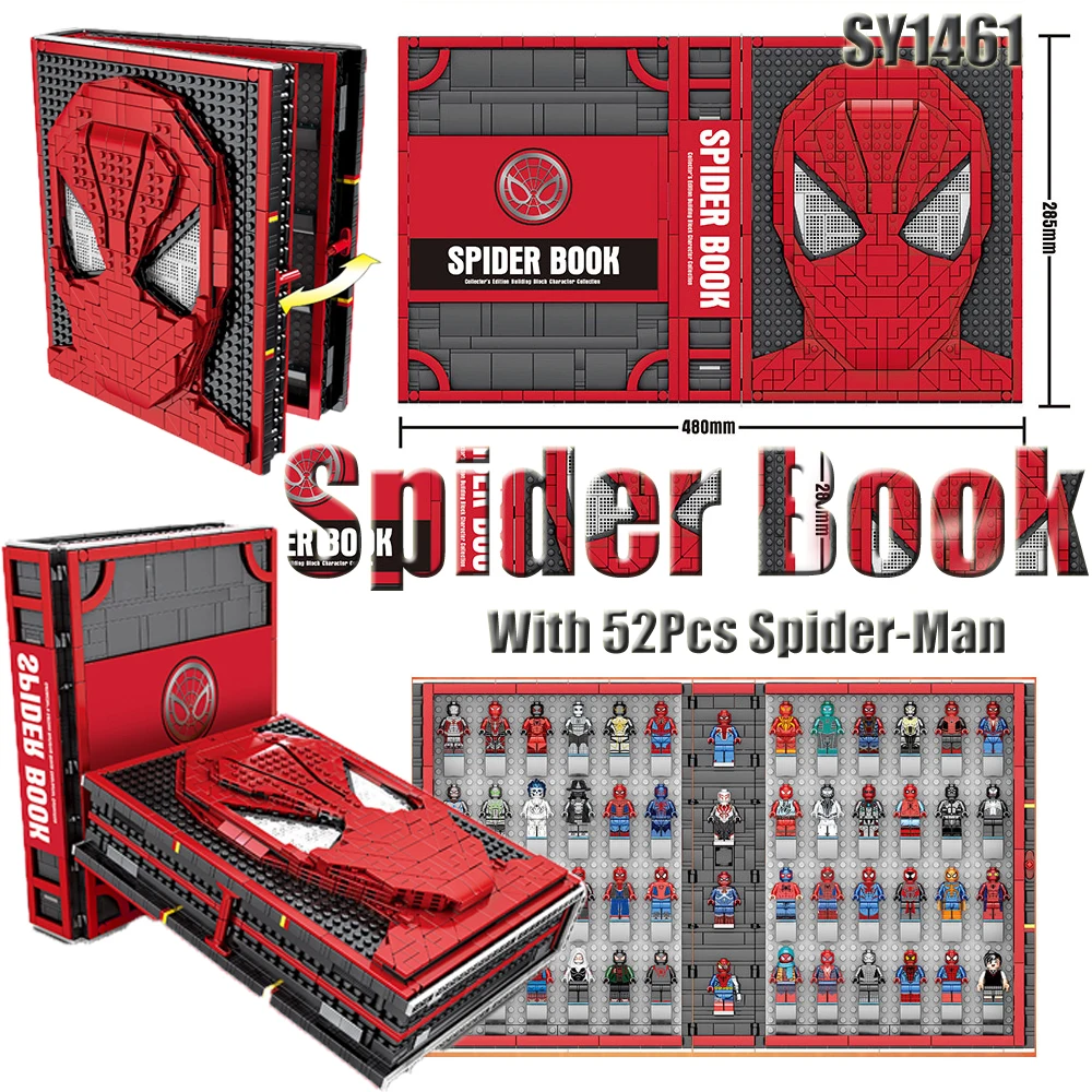 Best DHL Free Shipping Spider Book Collector‘s Edtion Building Blocks Character Cllection with 52Pcs Spi