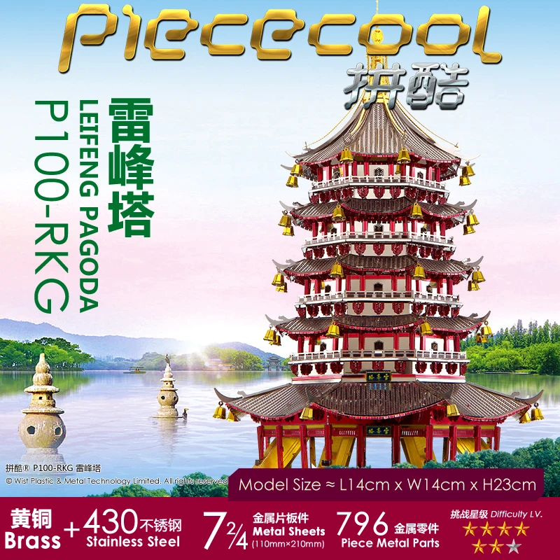 Piececool Leifeng Pagoda building Model 3D laser cutting Jigsaw puzzle DIY Metal model Nano Puzzle