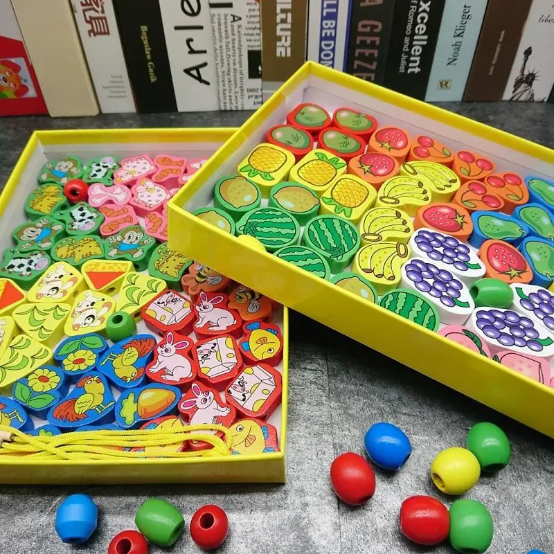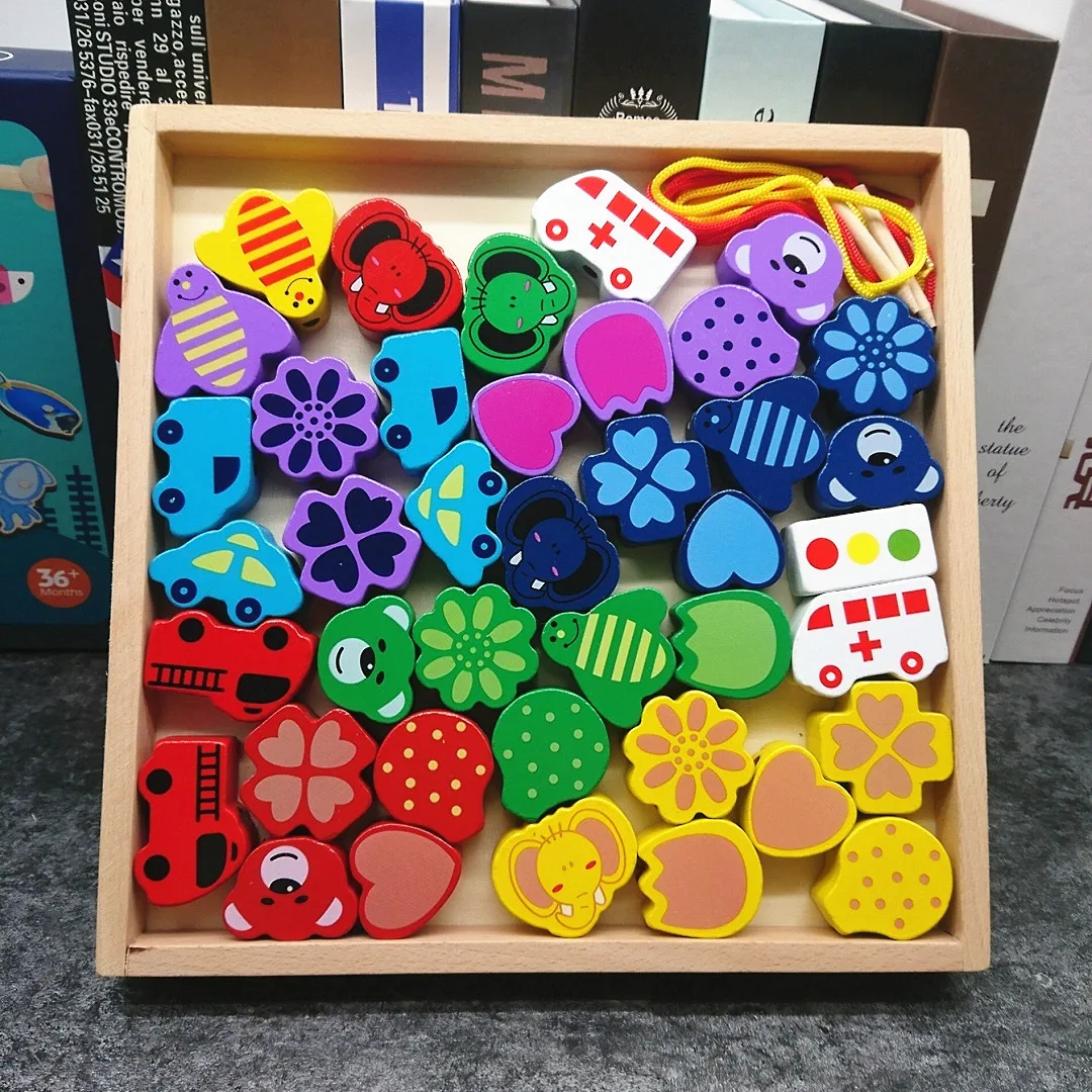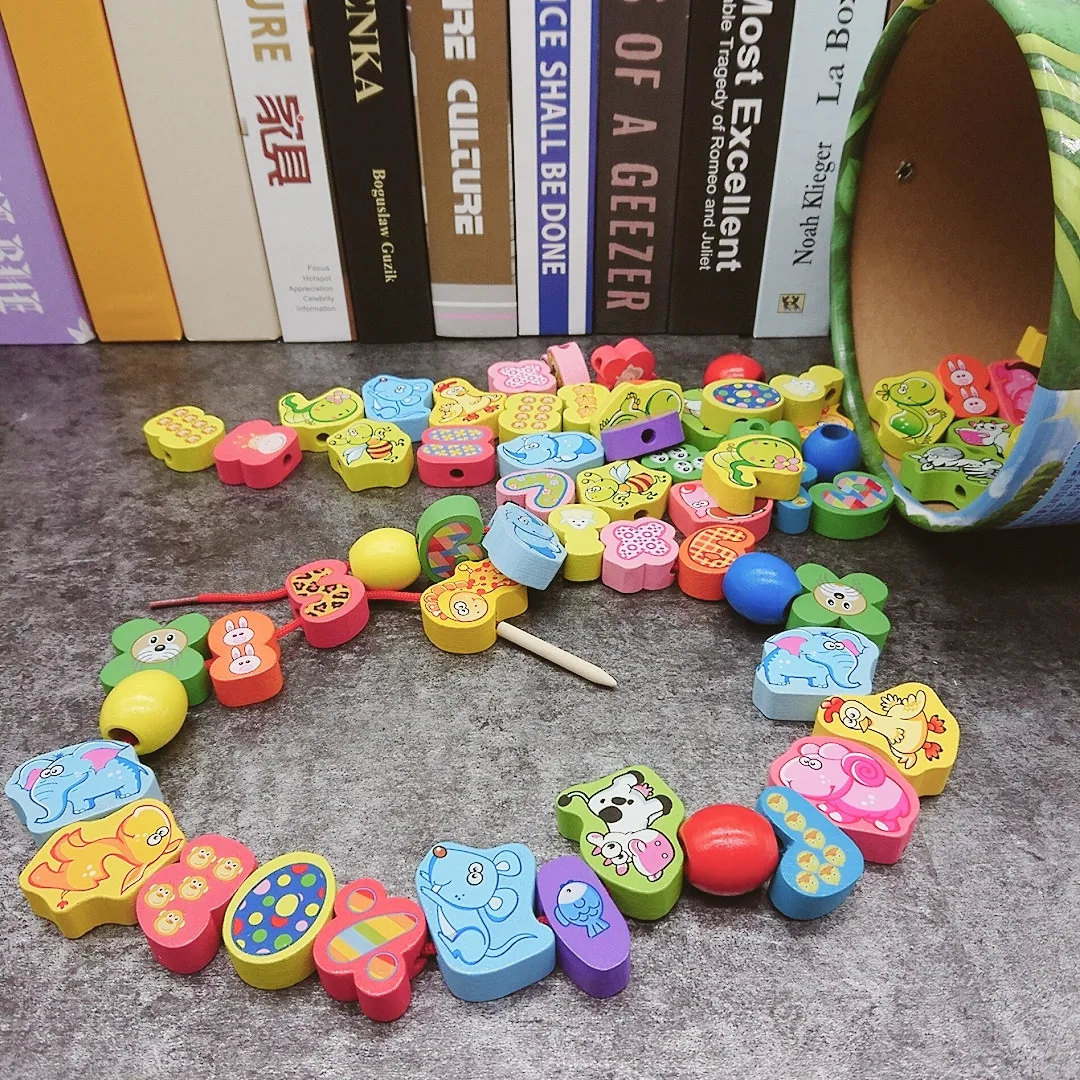 BEST SELLER Children Wood Large Particles Beaded Bracelet Bead-stringing Toy Threading Toy Educational Force Bu