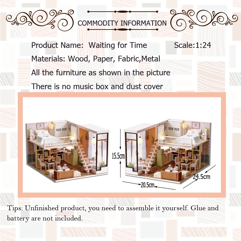 HIGH QUALITY Muñeca casa miniatura DIY casa de muñecas con muebles de madera de tiempo de espera juguetes para n