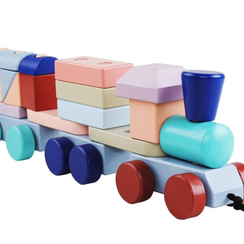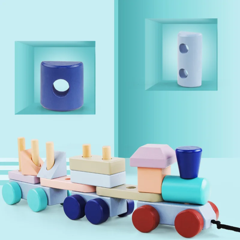 Wooden Train Building Blocks Educational Kids Baby Colorful Stacking Train Toddler Block Toys For C