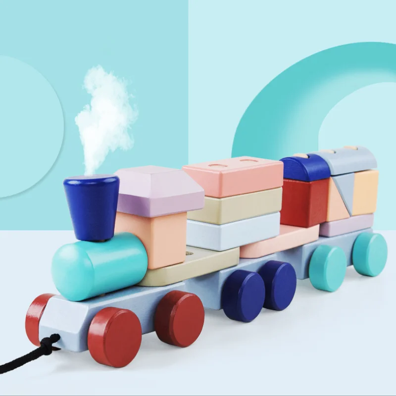 ORIGINAL Wooden Train Building Blocks Educational Kids Baby Colorful Stacking Train Toddler Block Toys For C